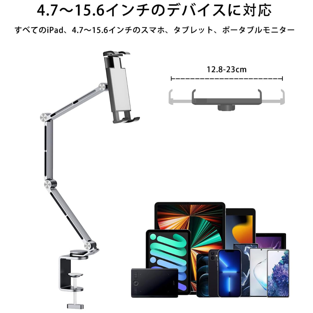 iPad全機種対応 クランプ式アーム型タブレットスタンド シルバー [iPad-STD-CLP-SV]