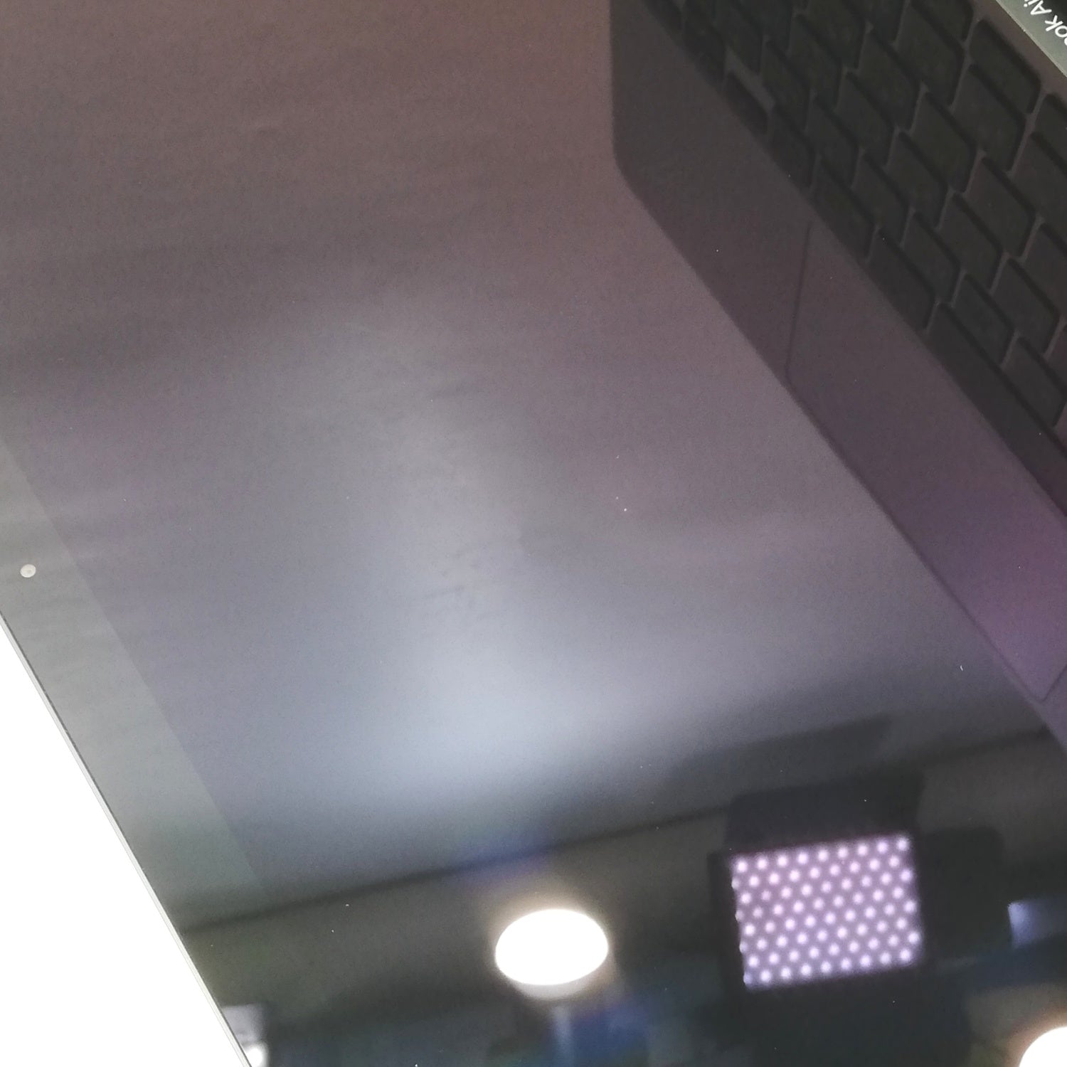 液晶] 描画良好。表面中央付近に微細傷・コーティング荒れ、右上描画枠外に点傷あり。/ [内側] キートップテカリ / [外観] 天板中央右上にシミ状の丸い変色箇所・左側フチ沿いに点傷、その他エッジ周囲に複数の細かい欠け傷あり。本体の形状を損なうような大きい傷はなく比較的使用感の少ない個体です。 / ストレージを512GBにアップグレード/2020年3月発売