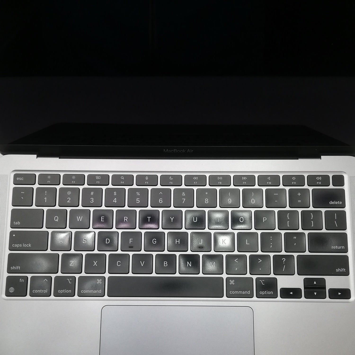 【全体に傷・使用感多い】 / [液晶] 描画良好。表面中央範囲に微細コーティング荒れ、下部描画枠沿いに非常に薄い線傷・微小傷がまばらにあり。/ [内側] キートップテカリ、パームレストテカリ・微細傷、本体側エッジ・液晶枠部分に指で触知できる程度の数カ所の微細な欠け傷あり。/ [外観] 天板浅い凹み・微細傷、底面浅い凹み・塗装剥げ・ステッカー跡、その他エッジ面に複数の細かい欠け傷あり。本体の形状を損なうような大きい傷はありませんが、総じて目立つ使用感が見られる個体です。/ 箱欠品 / メモリを16GB、ストレージを512GBにアップグレード/2020年11月発売