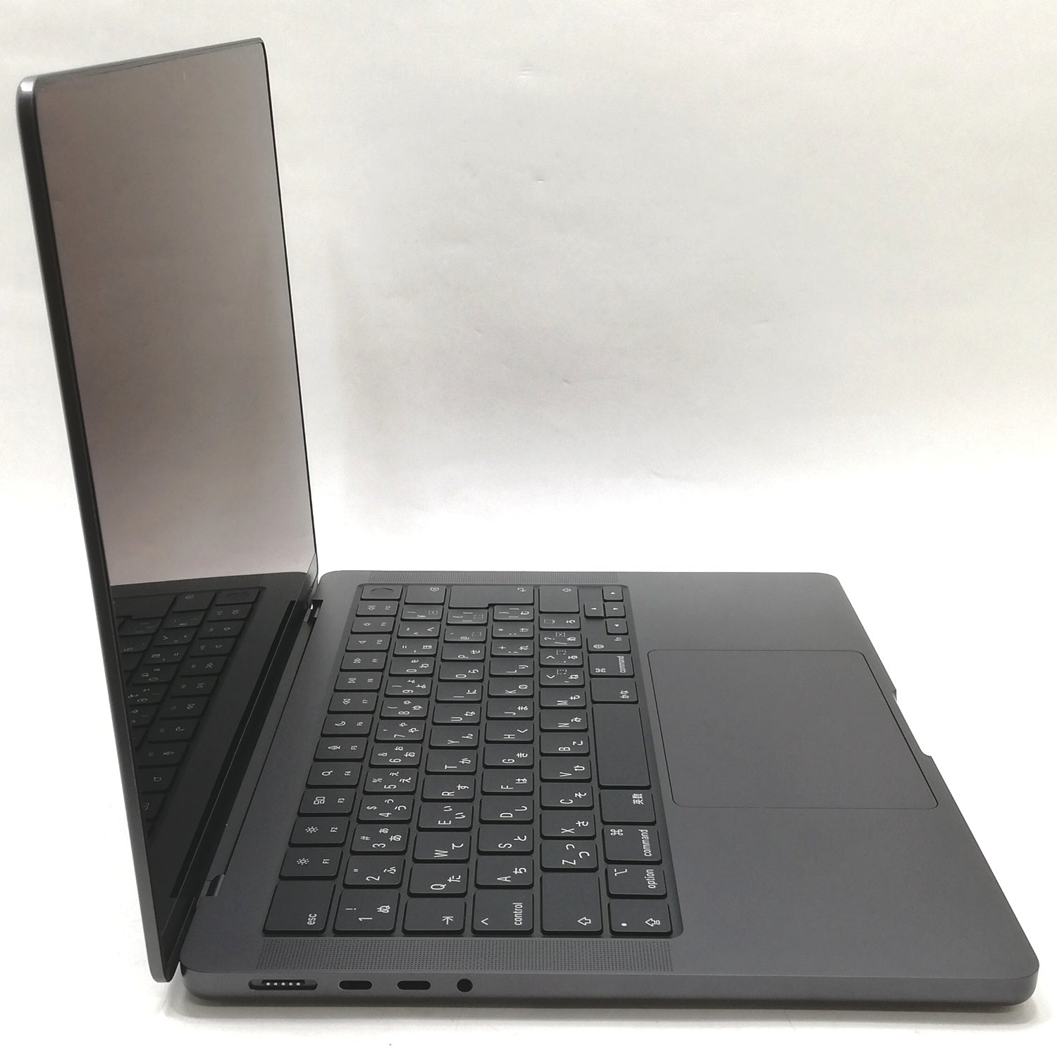 [液晶] 描画良好。表面にキーボード圧迫痕・数カ所の点傷・やや広範囲に微細なコーティング荒れあり。/ [内側] キートップにごく軽微なテカリ、右スピーカーエッジ面に微小な欠け傷あり。/ [外観] 底面パネル下部左右フチ沿いに薄い削れ傷、その他に表面・側面・エッジ周囲に細かい傷・や欠け傷が散在しています。塗装の特性上傷が目立ちますが、比較的使用感の少ない個体です。/ 付属品MagSafe3ケーブル色違い(シルバー)/ 箱欠品 /2023年11月発売