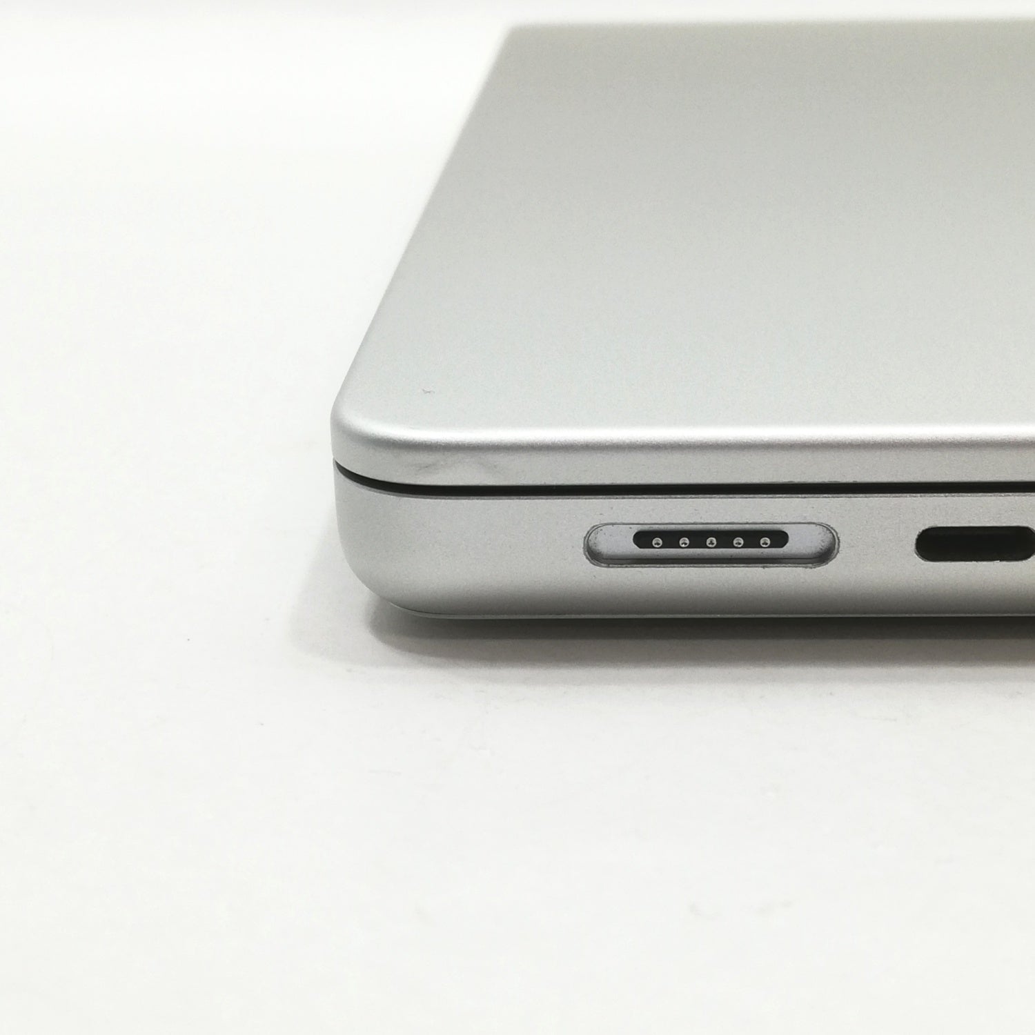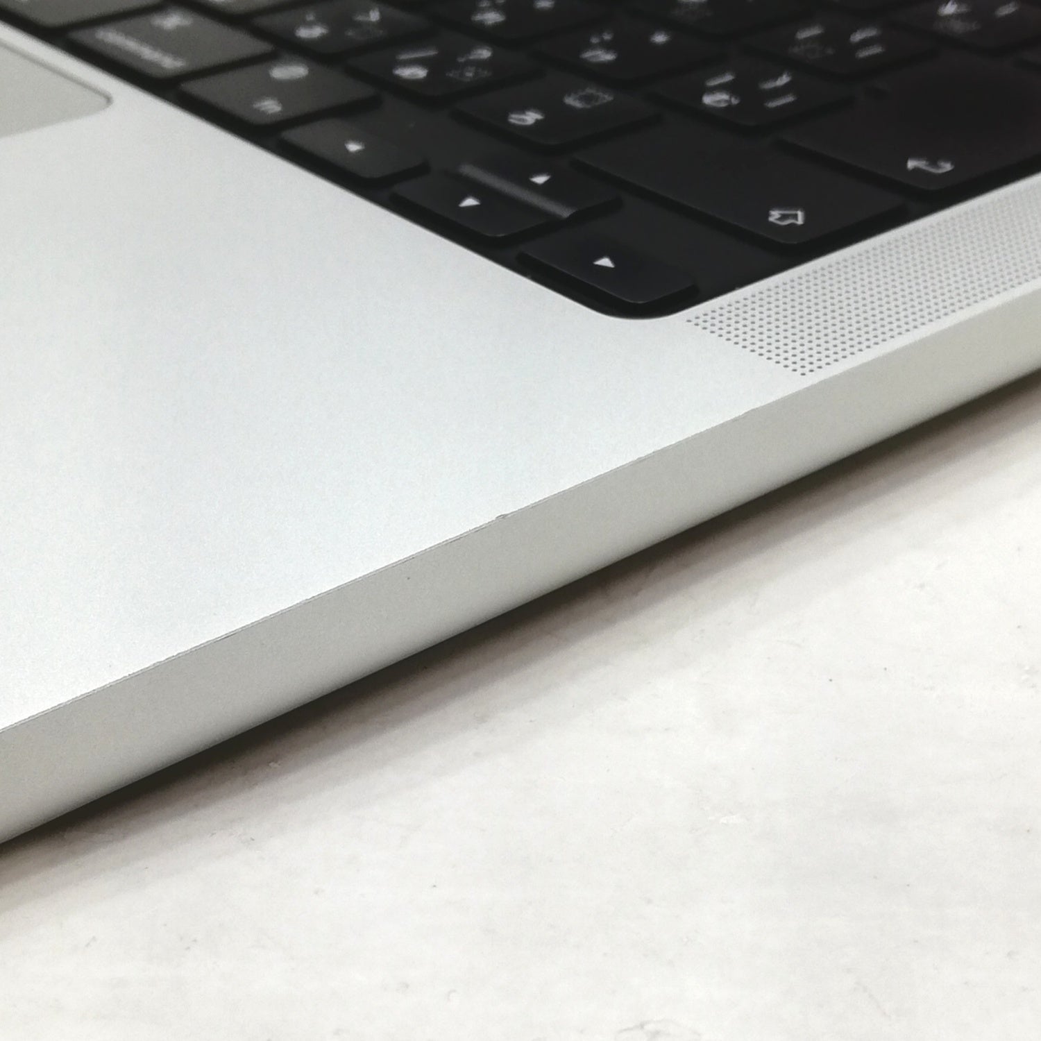 【外観ごく軽微な歪み】 / [液晶] 描画良好。表面左側・右側の描画枠沿いに微小傷、中央に薄いキーボード圧迫痕・微細コーティング荒れがまばらにあり。/ [内側] キートップテカリ、パームレストエッジ面に微細な欠け傷、左リストにごく軽微な凹みあり。/ [外観] 本体を閉じた状態で側面を指でなぞると確認できる程度のわずかなズレがあり、それに伴いMagSafeポート側カドに薄い凹み変色が見られます。ヘッドフォンジャック付近に擦れ傷、天板右下に薄い線傷あり。傷は少数で比較的使用感の少ない個体です。/ 付属品ケーブル皮膜に軽度変色。/ 箱欠品 / メモリを32GBにアップグレード/2021年10月発売