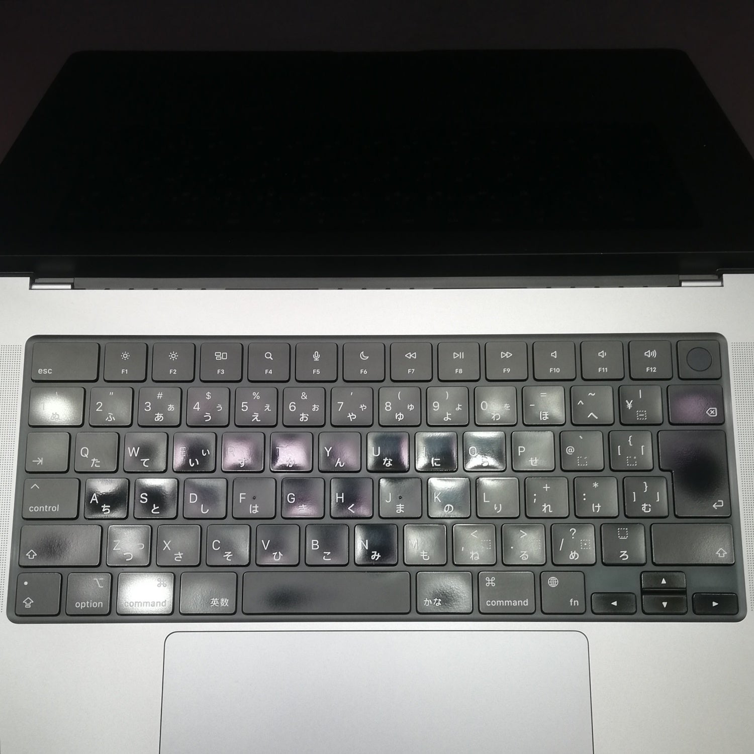 【液晶表面傷多い】 / [液晶] 描画良好。表面左描画枠沿いに小傷、中央にキーボード圧迫痕、やや広範囲に微細コーティング荒れや薄い毛筋傷がまばらに見られます。/ [内側] キートップ・パームレストにテカリ、画面ベゼルゴムごく軽微な劣化 / [外観] 天板右上・底面左右下ゴム足付近にそれぞれステッカー跡、背面左ヒンジに小さい打痕箇所、側面に微細傷あり。特記以外に塗装のくすみ・テカリが見られる箇所あり。外観傷は少なめですが、総じて軽度の使用感が見られる個体です。/ 箱欠品 / メモリを32GB、ストレージを2TBにアップグレード/2021年10月発売